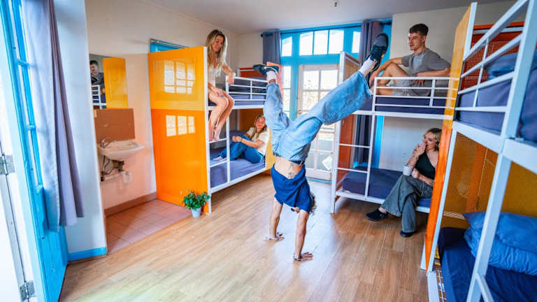 Die Schlafsäle sind sauber und mit neuen Etagenbetten sowie Matratzen ausgestattet. Mehrere Gemeinschaftsbereiche bieten zusätzliche Entspannungsmöglichkeiten für die Gäste.