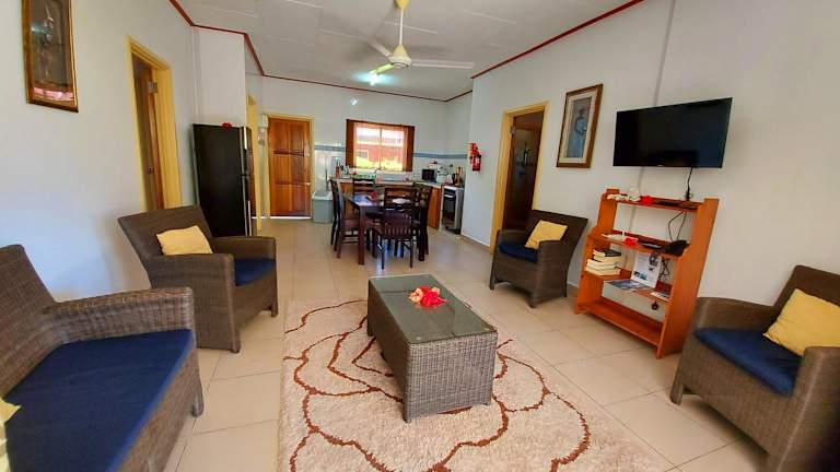 Die Hostellerie La Digue ist die perfekte Wahl für Reisende, die eine selbstversorgende Unterkunft suchen. Die moderne Einrichtung der Häuser mit voll ausgestatteter Küche und kostenfreien Privatparkplätzen bietet den Gästen Komfort und Flexibilität. Die Lage des Hotels in La Digue ist ideal, nur wenige Gehminuten vom Fährhafen Inter Island Ferry und dem Strand Anse Severe entfernt. Das Stadtzentrum von La Digue mit einer Vielzahl von Restaurants und Cafés ist ebenfalls bequem zu Fuß erreichbar.