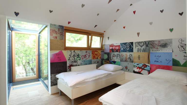 Das MCC Hostel in Celje ist eine ideale Unterkunft für Reisende, die eine zentrale Lage schätzen und Wert auf einzigartiges Design legen. Mit seiner flippigen Kunst und dem kulturellen Erbe der Stadt bietet das Hostel eine besondere Atmosphäre. Die thematisch gestalteten Zimmer und der Gemeinschaftsbereich mit Küche sorgen für Komfort und Gemütlichkeit. Das Hostel bietet auch eine Vielzahl von Einrichtungen wie eine multifunktionale Halle, Klassenräume und eine Computerecke. Der Garten mit Sportmöglichkeiten und Grillplatz lädt zum Entspannen ein. Kostenlose Fahrräder und Longboards stehen zur Verfügung und kostenloses WLAN ist im gesamten Hostel verfügbar. In der Nähe gibt es eine Kinderecke und eine Bar, in der Sie Getränke und Snacks genießen können. Die Ruinen des Schlosses Celje und die Kathedrale des Heiligen Daniel sind nur wenige Autominuten entfernt. Der See Šmartinsko mit Freizeiteinrichtungen ist ebenfalls leicht erreichbar.