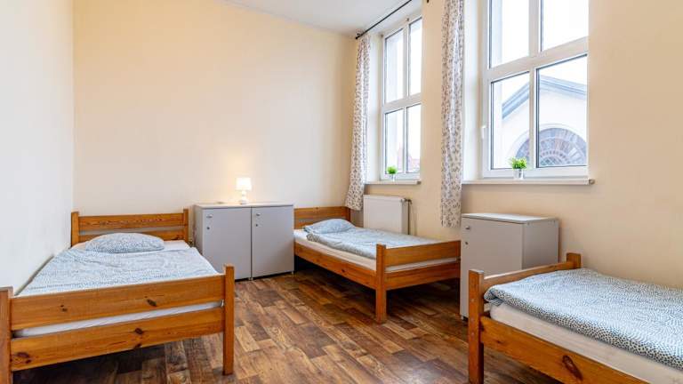 Die Zimmer im Hostel Orange Plus sind individuell gestaltet und in verschiedenen Farben gehalten, was ihnen eine fröhliche und einladende Atmosphäre verleiht. Die Zimmer verfügen über Holzböden und große Fenster, die viel Tageslicht hereinlassen. Jedes Zimmer ist mit einem Tisch und Stühlen ausgestattet. Das Gemeinschaftsbad befindet sich auf dem Flur und wird regelmäßig gereinigt, um Ihren Komfort zu gewährleisten. Kostenfreier Tee und Kaffee stehen Ihnen in der gut ausgestatteten Küche zur Verfügung, in der Sie auch Ihre Mahlzeiten zubereiten und genießen können.