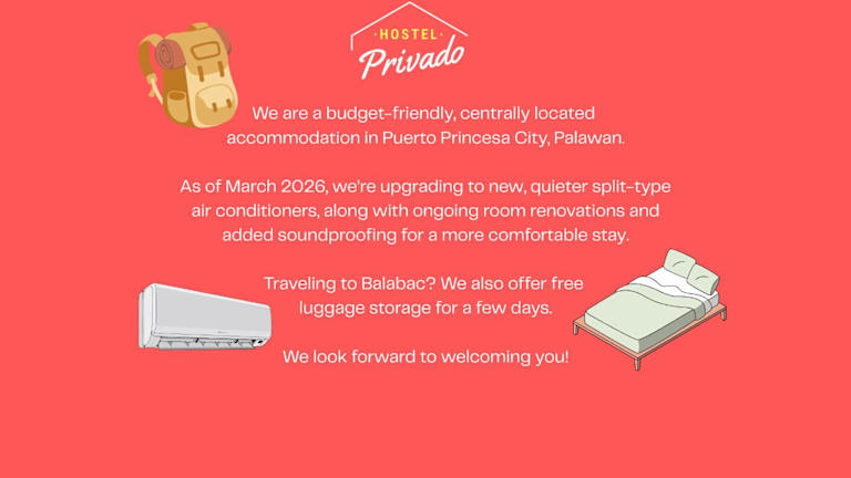 Das Hostel Privado befindet sich in Puerto Princesa, weniger als 2,6 km vom Strand Pristine Beach und 8 km von Honda-Bucht entfernt. Es liegt in der Nähe des Mendoza Parks, des Palawan Museums und des Kongresszentrums Skylight Convention Center. Der Flughafen Puerto Princesa ist in unmittelbarer Nähe.