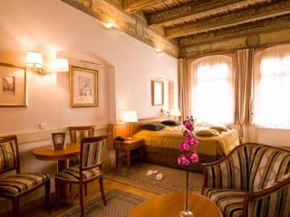 In den Zimmern befinden sich Klimaanlage und Heizung. Ausstattung umfasst ein Doppelbett, Safe und Minibar sowie eine Kochnische mit Tee-/Kaffeemaschine. Zur Ausstattung gehören ein Telefon, ein TV-Gerät und kostenloses WLAN. Im Badezimmer gibt es eine Dusche und eine Badewanne, Haartrockner und Bademäntel. Es sind Familien- und Nichtraucherzimmer verfügbar.