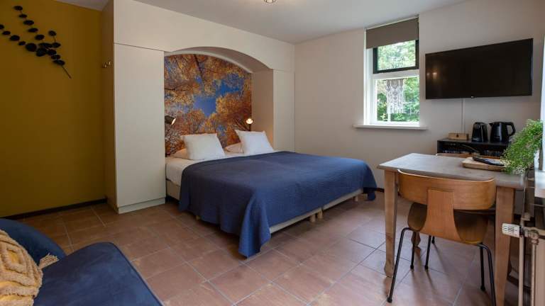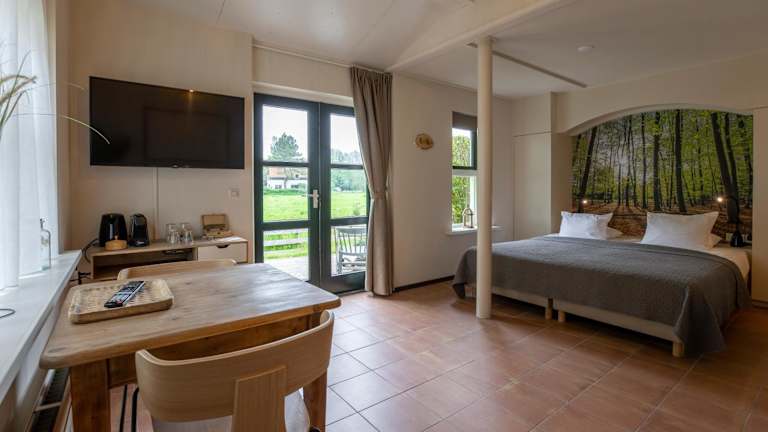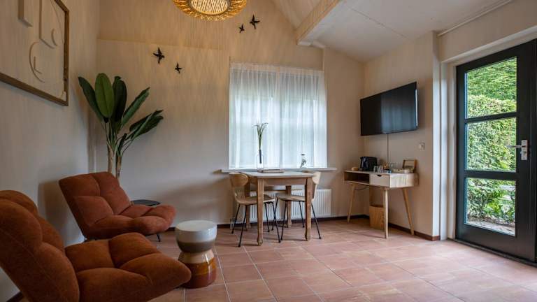 Die Zimmer im Hotel De 14 Sterren sind komfortabel eingerichtet und verfügen über kostenfreies WLAN. Jedes Zimmer hat ein eigenes Badezimmer mit Dusche und WC. Die meisten Zimmer bieten zudem eine eigene Terrasse, auf der Sie die frische Luft und die Ruhe der Umgebung genießen können. Es gibt auch zwei Suiten im Hotel, von denen eine über einen Balkon verfügt und die andere mit einem zusätzlichen Sofa und Schreibtisch ausgestattet ist.