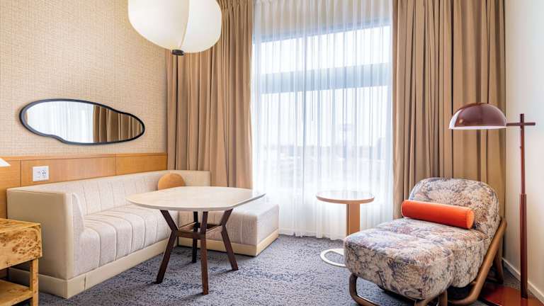 Das Hotel bietet 104 Zimmer, die über einen Aufzug erreichbar sind. Jedes Zimmer ist individuell gestaltet und verfügt über moderne Annehmlichkeiten wie Klimaanlage, Flachbildfernseher und kostenloses WLAN. Einige Zimmer verfügen über einen Balkon oder eine Terrasse, auf der Sie die Aussicht genießen können. Die Badezimmer sind mit Duschen, Haartrocknern und hochwertigen Pflegeprodukten ausgestattet.