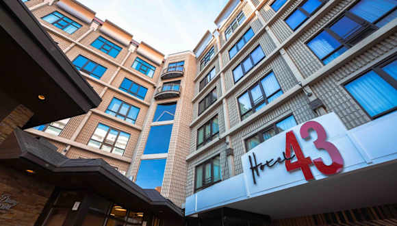 Die Zimmer im Hotel 43 sind in modernen, kräftigen Farben gehalten und bieten eine wunderschöne Einrichtung. Jedes Zimmer verfügt über luxuriöse Bettwäsche und ein eigenes Badezimmer. Die Deluxe Zimmer sind mit einem 50-Zoll-HD-TV, Designer-Annehmlichkeiten und Bademänteln ausgestattet, um Ihren Aufenthalt so angenehm wie möglich zu gestalten. Das Hotel ist auch haustierfreundlich, so dass Sie Ihren pelzigen Freund mitbringen können.