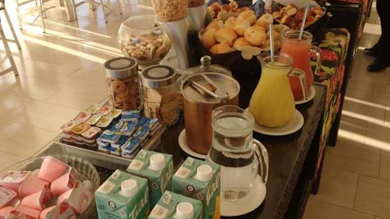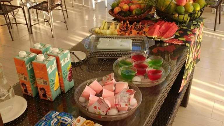 Täglich werden im Hotel 494 Oliveira-MG Buffet- und kontinentalen Frühstück angeboten. Die Unterkunft bietet zudem die Möglichkeit zur Essenslieferung in die Unterkunft.