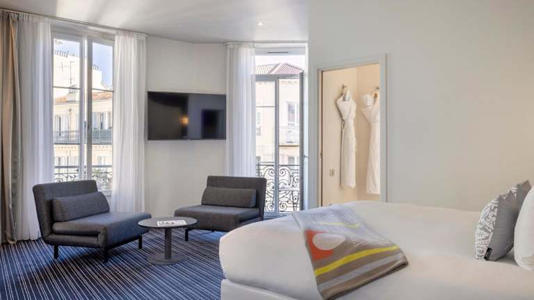 Die Zimmer im Hotel 66 Nice sind schallisoliert und bieten einen Flachbild-TV. Bei Ihrer Ankunft steht eine kostenlose Wasserflasche für Sie bereit. Das private Badezimmer verfügt über eine ebenerdige Dusche, kostenfreie Pflegeprodukte und einen Haartrockner.