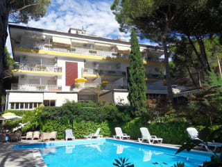 Weiters stehen Lift, Bar mit Terrasse, Schwimmbad im Freien, ein herrlicher Garten mit kl. Kinderspielplatz, Parkplatz, Strandservice in reservierter Strandzone unseren Gästen zur Verfügung, Tiefgarage auf Anfrage. Frei Wireless internet zugang.
