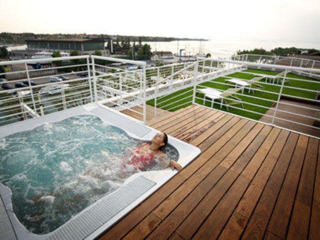 Am Wasser, 5 Minuten von (fast) allem entfernt. Wir befinden uns an der Uferpromenade Lungolago Garibaldi 3 in Peschiera del Garda, direkt mit Blick auf den See, nahe der Flussmündung des Mincio. Auf den See zu schauen, ist wunderschön, aber wissen Sie, was an unserem Hotel auch noch absolut fantastisch ist? Es ist nur 5 Minuten von (fast) allem entfernt. Zum Beispiel: In 5 Minuten (zu Fuß) sind Sie: im Zentrum am Strand am Bahnhof an der Bushaltestelle, um eine Rundfahrt um den See zu machen oder zu den Vergnügungsparks zu fahren an der Anlegestelle des Schiffs. In 5 Minuten (mit dem Fahrrad) sind Sie: am Beginn des Radwegs Peschiera - Mantua In 5 Minuten (mit dem Auto) sind Sie an der Mautstelle der Autobahn in Gardaland im Golfclub Paradiso Zugegeben: Verona ist 20 Minuten (mit Auto oder Zug) entfernt, und um ins Zentrum von Venedig zu gelangen, braucht man 75 Minuten (mit dem Zug). Aber es lohnt sich!
