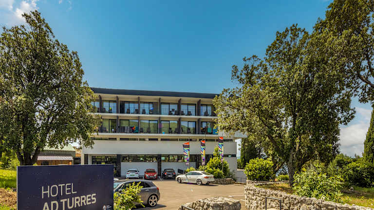 Das Hotel liegt direkt am Eingang zu Crikvenica, umgeben von Kiefernwald und mediterraner Vegetation, mit einem herrlichen Ausblick auf die Insel Krk. Es ist Teil des Ad Turres Resorts. Neben 13 Pavillons bietet auch das Ad Turres Hotel seinen Gästen Entspannung und Erholung am rekonstruierten Außenpool und am nahe gelegenen Kieselstrand. Das Hotel erhielt seinen Namen nach dem antiken Ad Turres-Komplex („an den Türmen“). Die Architektur des Testament der 1970er Jahre, aber echte kulturelle Schätze sind im Interuieur zu finden- Wandgemälde der bekanntesten kroatischen Maler des letzten Jahrhunderts Oton Gliha, Edo Murtic und Zlatko Prica. Dieses kulturelle Erbe ist der Grund, warum das Ad Turres Hotel von Kunstkreisen oft als „Hotel- Museum“ bezeichnet wird.