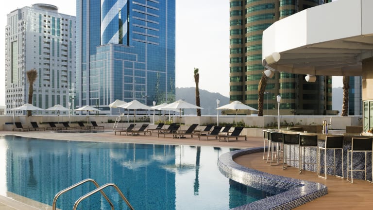 Adagio Aparthotel Fujairah is located in the heart of the City & offers 72 fully furnished & equipped Studios, One & Two Bedroom Apartments making it ideal as your temporary residence during your stay in Fujairah. Stay, live & enjoy! Fujairah's mountains and skyline provide stunning views from the 72 apartments at Aparthotel Adagio Fujairah. Enjoy free access to the swimming pool and fitness centre at the attached Novotel and choose also from tempting dining options.