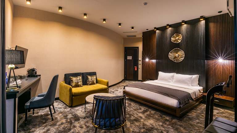Die klimatisierten Zimmer im Hotel Adamo bieten den Gästen eine komfortable Unterkunft. Jedes Zimmer ist mit einem Flachbild-Sat-TV, einem Kühlschrank, einem Wasserkocher und einem Schreibtisch ausgestattet. Das eigene Bad verfügt über eine Dusche, eine Badewanne, einen Haartrockner und kostenlose Pflegeprodukte. Einige Zimmer bieten zudem einen atemberaubenden Blick auf die Stadt.