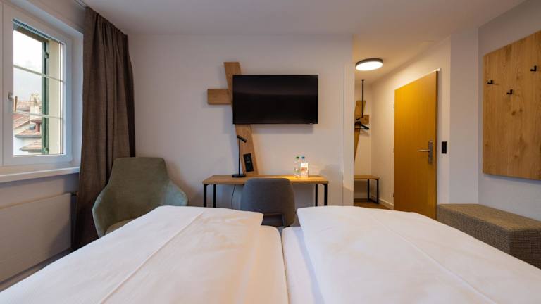 Jedes Zimmer im Hotel Adler ist mit einem Schreibtisch, einem Flachbild-TV, einem eigenen Badezimmer, Bettwäsche und Handtüchern ausgestattet. Des Weiteren verfügen alle Gästezimmer über einen Safe.