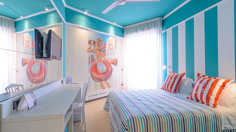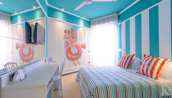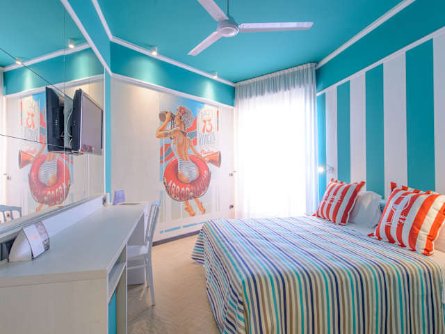Das Admiral Art Hotel befindet sich in Rimini an der Parallelstraße zur Promenade Lungomare Di Vittorio. Der eigene Strand des Hotels ist nur 150 m entfernt und lädt zu erholsamen Stunden am Meer ein. In der Umgebung finden Sie auch eine Vielzahl von Restaurants, Geschäften und Unterhaltungsmöglichkeiten.