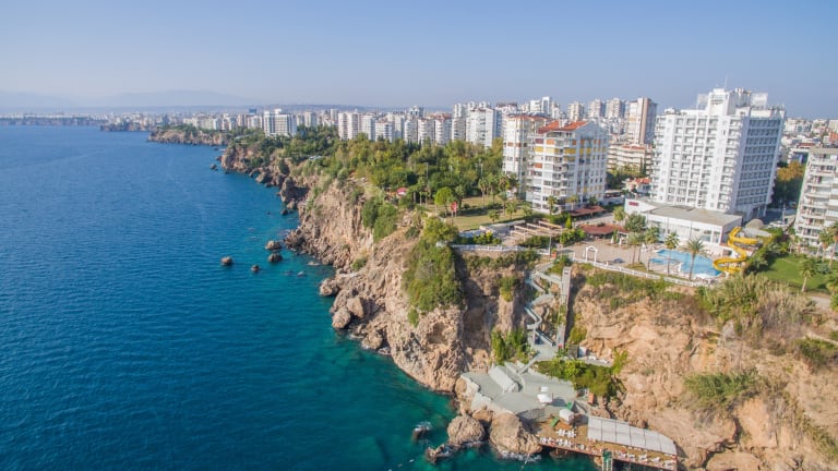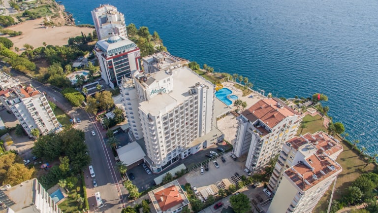 Mit einem Außenpool mit Wasserrutschen und Zimmern mit eigenem Balkon erwartet Sie das Adonis Hotel an der Küste von Antalya mit Blick auf das Mittelmeer. Die im Jahr 2019 komplett renovierten Zimmer im Antalya Adonis Hotel sind mit gerahmten Kunstwerken und Holzmöbeln eingerichtet. Jedes Zimmer verfügt über einen TV und ein eigenes gefliestes Bad. Das Restaurant im Adonis Hotel serviert Ihnen türkische und internationale Küche. Im Innen- und Außenbereich können Sie speisen. Die Bars und Clubs im Zentrum von Antalya liegen nur 5 Fahrminuten vom Hotel entfernt. Über eine Treppe in den Klippen gelangen Sie zur privaten Badeplattform und zur Sonnenterrasse des Adonis Hotels. Freuen Sie sich auch auf einen Innenpool und ein Spielezimmer mit Darts und Billard. Das Antalya Adonis Hotel liegt 20 Fahrminuten vom internationalen Flughafen Antalya entfernt. Die Parkplätze an der Unterkunft nutzen Sie kostenfrei. AKTIVITÄTEN & SERVICES Mit Animation-Shows, Tischtennis, Billard, Videospiele, Mini-Club für die Kinder in den Sommermonaten bieten wir Ihnen viele Entertainmentalternativen für Sie und Ihre Kinder. Außen-und Innenpool für die Erwachsenen und Kinder.Strand mit blauer Flagge, Türkisches Bad, Dampfbad und Außenpool und Massage.Friseur Salon für Männer und Frauen, Gesichtsmasken, Maniküre und Pediküre, dampfige Hautpflege mit professionellen Produkten sind zur ihrer Verfügung gestellt.