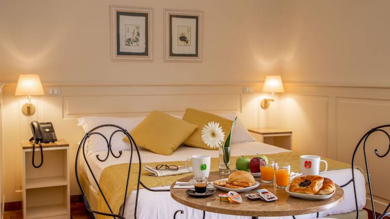 Jeden Morgen wird Ihnen eine kostenlose Auswahl an Brot und Croissants auf das Zimmer gebracht. In der Umgebung des Hotels gibt es eine Vielzahl von Restaurants, in denen Sie traditionelle römische Küche genießen können. Das freundliche Personal des Hotels gibt Ihnen gerne Empfehlungen für Restaurants und hilft Ihnen bei der Reservierung.
