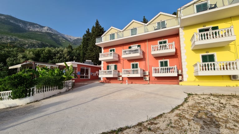 Das Hotel Aghios Gerasimos befindet sich in Lourdata, etwa 200 Meter vom Strand entfernt.