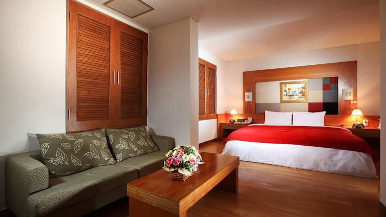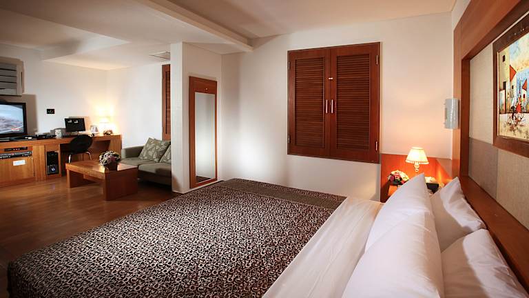 Die Gästezimmer sind mit Klimaanlage, Flachbild-TV mit Satellitenkanälen, Kühlschrank, Wasserkocher, Dusche, kostenlosen Pflegeprodukten und Schreibtisch ausgestattet. Jedes Zimmer verfügt über ein eigenes Badezimmer mit Haartrockner und Bettwäsche.