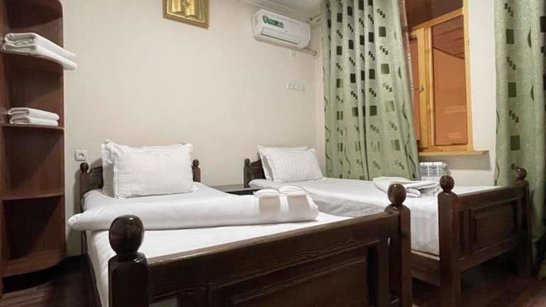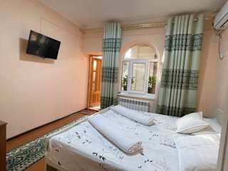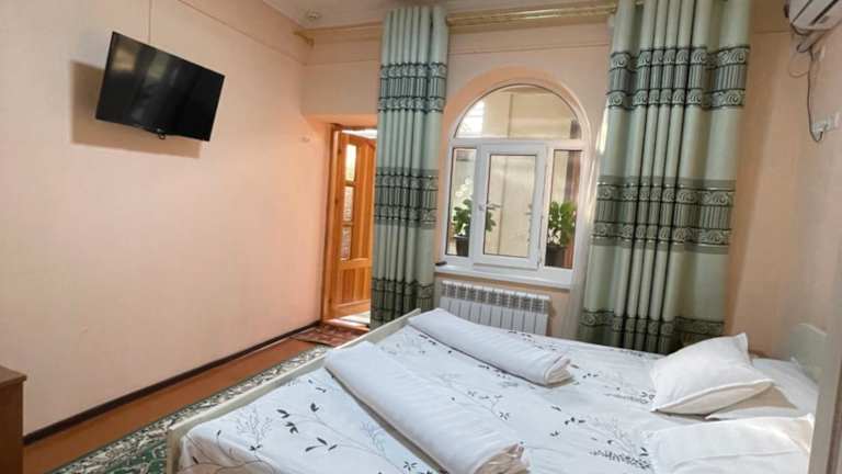 Das Hotel Al Mansur in Buxoro ist eine ideale Unterkunft für Reisende, die eine komfortable und gut ausgestattete Unterkunft suchen. Hier können Sie sich auf eine 24-Stunden-Rezeption, kostenfreies WLAN und Flughafentransfers freuen. Genießen Sie ein köstliches Frühstück und entspannen Sie auf der Terrasse oder nutzen Sie die Gemeinschaftsküche für eigene Mahlzeiten. Das Hotel Al Mansur bietet alles, was Sie für einen angenehmen Aufenthalt in Buxoro benötigen.