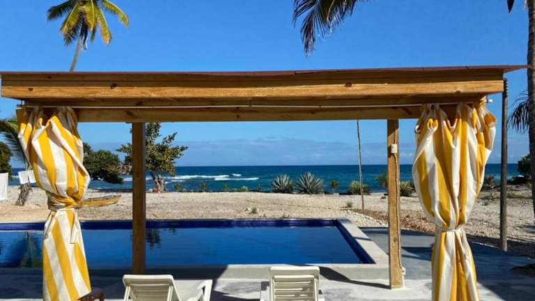 Verbringen Sie einen entspannten Urlaub im Hotel Al Mare in Santa Cruz de Barahona. Mit einer Bar, einem eigenen Strandbereich und einer Gemeinschaftsküche bietet das Hotel alles, was Sie für einen erholsamen Aufenthalt benötigen. Genießen Sie den Meerblick von Ihrem Balkon aus und entspannen Sie im Garten, am Außenpool oder auf der Sonnenterrasse. Der internationale Flughafen Toussaint Louverture ist nur 155 km entfernt.