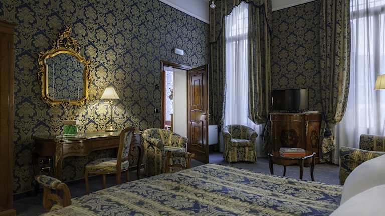 Die elegant eingerichteten Zimmer im Al Ponte Antico Hotel bieten einen einzigartigen Mix aus antikem Charme und modernem Komfort. Jedes Zimmer ist mit Kronleuchtern, Wandteppichen und hochwertigen Möbeln ausgestattet. Zur Ausstattung gehören eine Klimaanlage, ein Flachbild-Sat-TV und eine Minibar. Im eigenen Bad finden Sie Hausschuhe, kostenfreie Pflegeprodukte und einen kuscheligen Bademantel.