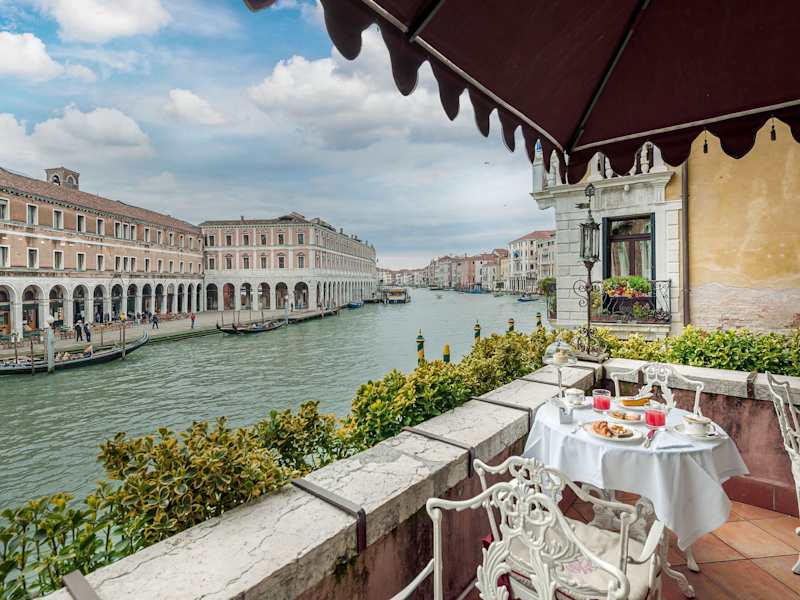 Das Al Ponte Antico Hotel bietet eine entspannte Atmosphäre und die Möglichkeit, die Schönheit von Venedig zu erkunden. Entspannen Sie sich in der Lounge mit ihrem kunstvollen Dekor oder auf der gemeinsamen Terrasse mit Panoramablick. Von hier aus können Sie den Blick auf den Canal Grande und die Rialtobrücke genießen.
