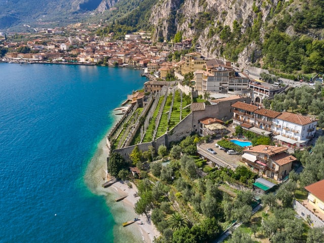 Unser Hotel liegt in einer besonderen und von unseren Gästen sehr beliebten Lage. Es befindet sich in einer absolut ruhigen Panoramalage, umgeben von Zitronengärten und Olivenhainen, entfernt vom Autoverkehr, direkt am See und gleichzeitig sehr nahe am historischen Zentrum von Limone und der Bootsanlegestelle (2 Minuten zu Fuß)