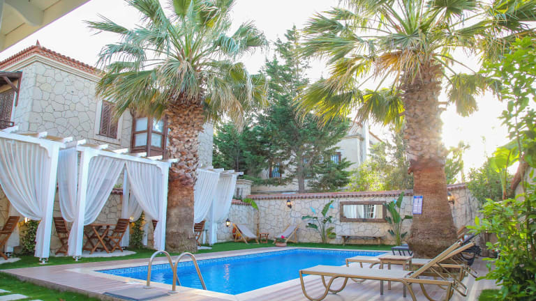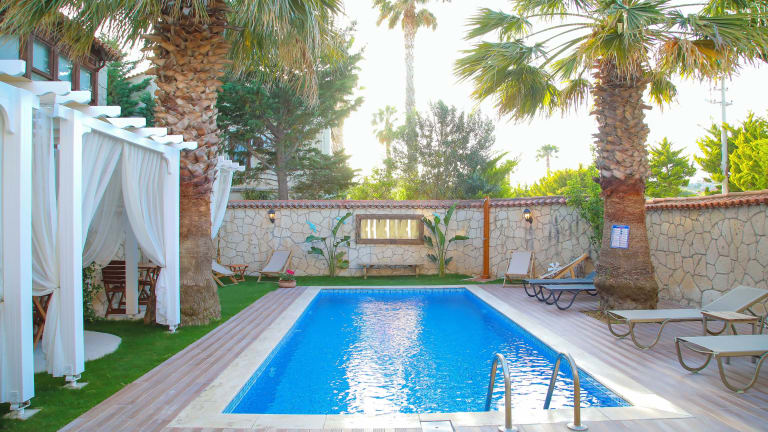 Das Alacati Balbadem Hotel verfügt über einen kleinen Garten mit einem Whirlpool, in dem Sie sich entspannen können.