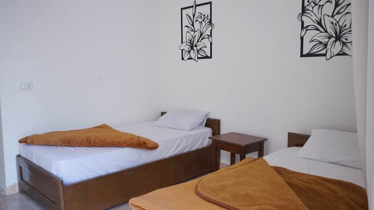 Das Alaska Camp & Hotel ist ein einfaches und gemütliches Hostel im Zentrum von Dahab, direkt am Golf von Akaba gelegen. Der umgebende Garten mit schattigem Sitzbereich lädt zum Entspannen ein. Das Hotel bietet kostenfreies WLAN in den öffentlichen Bereichen und einigen Zimmern. Die Zimmer sind schlicht, aber komfortabel eingerichtet und verfügen über Holzmöbel, weiße Bettlaken und Fliesenböden. Zur Ausstattung gehören ein Deckenventilator, ein Schrank und ein Ankleidebereich. Im Badezimmer finden Sie eine Dusche und ein WC. Der internationale Flughafen Scharm El-Scheich ist etwa 90 km entfernt und öffentliche Parkplätze stehen außerhalb des Hotels zur Verfügung.
