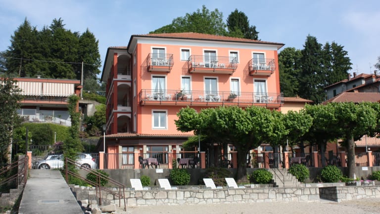 Das Hotel Albergo Riva bietet Ihnen einen traumhaften Blick auf den Lago Maggiore und die umliegenden Berge. Freuen Sie sich auf moderne, helle Zimmer, einen kostenfreien Privatstrand und kostenlose Parkplätze. Beginnen Sie Ihren Tag mit einem leckeren kontinentalen Frühstück und entspannen Sie auf der Terrasse mit Seeblick. Das Hotel ist auch ideal gelegen, um die nahegelegenen Golfplätze und das Kloster Santa Caterina del Sasso zu erkunden.