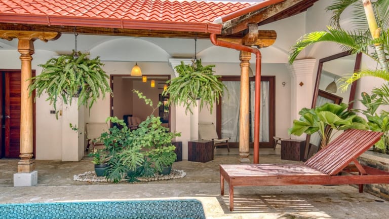 Das Hotel Alcazar in San Juan del Sur bietet Ihnen alles, was Sie für einen perfekten Strandurlaub benötigen. Mit einem Außenpool, kostenlosen WLAN und verschiedenen Wellnesseinrichtungen, einschließlich Massageservice, können Sie sich rundum entspannen. Das Hotel bietet auch einen Tourenschalter und organisiert Reitausflüge für Sie. Die modernen Zimmer sind im minimalistischen Stil eingerichtet und verfügen über Annehmlichkeiten wie Sat-TV, Klimaanlage und Safes. Die Suite bietet zusätzlich einen gemütlichen Sitzbereich und einen Balkon. Das Hotel Alcazar verfügt über schöne Gärten und Terrassen, auf denen Sie sich entspannen können, sowie einen praktischen Wäscheservice. Sportangeln ist eine der beliebtesten Aktivitäten in der Umgebung, aber auch Segeln und Baumwipfeltouren werden angeboten. Die Bushaltestelle befindet sich in der Nähe des Hotels und der internationale Flughafen Augusto C. Sandino ist in etwa 1 Stunde und 50 Minuten mit dem Auto erreichbar.