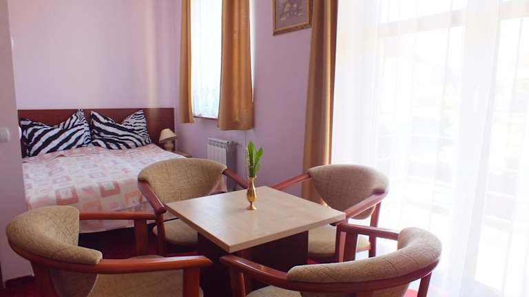 Die Zimmer im Hotel Aleksander sind klassisch eingerichtet und bieten eine angenehme Atmosphäre für einen erholsamen Aufenthalt. Jedes Zimmer verfügt über einen Couchtisch, Sat-TV und ein eigenes Bad mit Dusche. Einige Zimmer bieten auch einen Balkon, von dem aus Sie die frische Meeresbrise und den Blick auf die Umgebung genießen können. Kostenloses WLAN und ein Kühlschrank stehen in allen Zimmern zur Verfügung, um den Gästen zusätzlichen Komfort zu bieten.