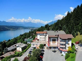 Das Hotel Alexanderhof befindet sich in erhöhter Lage und bietet einen beeindruckenden Panoramablick auf den Millstätter See. Das Zentrum von Millstatt ist nur 1,5 km entfernt und bequem zu erreichen. Der See selbst ist nur 900 m entfernt und lädt zu entspannten Spaziergängen oder Aktivitäten wie Schwimmen oder Wassersport ein. Die Umgebung bietet zudem zahlreiche Möglichkeiten zum Wandern und Radfahren inmitten der malerischen Natur.