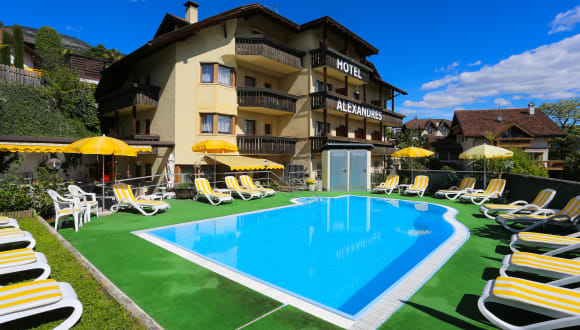 Willkommen in unserem Motorradhotel! Nur 10 km von Südtirols Landeshauptstadt Bozen entfernt erwartet Sie ein entspannender und erlebnisreicher Urlaub zwischen Nord und Süd. Unser Hotel Alexandres in Eppan an der Weinstraße verspricht Erholung nicht nur, sie hält auch, was sie verspricht. Toller Ausgangspunkt für Tagesfahrten: Dolomitenpässe: 30 km, Mendelpass: 10 km, Stilfserjoch 70 km, Fleimstal: 40 km Direkt am Fahrradweg. Bushaltestelle vor dem Haus. Denn im schönen Schwimmbad, auf der sonnigen Liegewiese und in den komfortablen Zimmern (inklusive gratis Internet per WLAN) ist nichts leichter, als sich ganz entspannt zurückzulehnen.