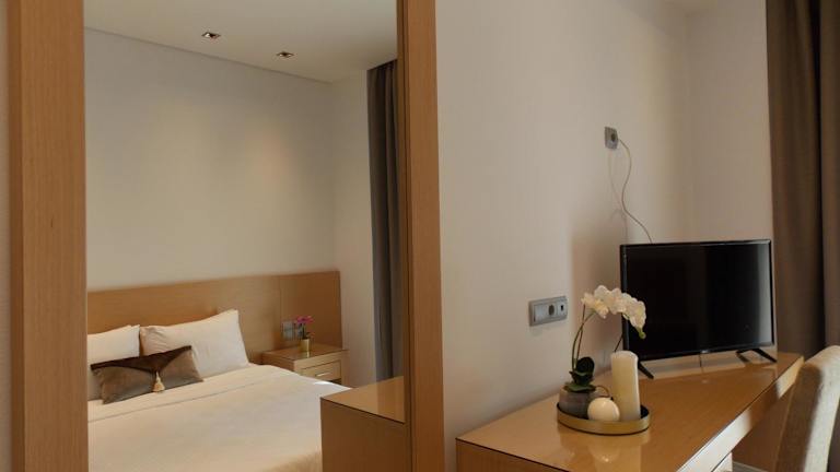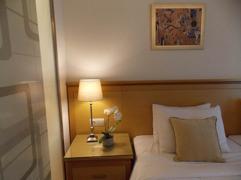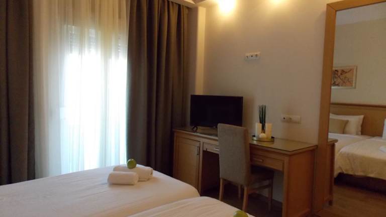 Das Hotel bietet 80 geräumige und voll ausgestattete Zimmer, die kürzlich renoviert wurden, um einen modernen und komfortablen Aufenthalt zu gewährleisten. Jedes Zimmer verfügt über ein eigenes Bad und einen Balkon, der einen herrlichen Blick auf die Umgebung bietet. Zusätzlich gibt es ein gemütliches Wohnzimmer, in dem Sie sich entspannen können. Die Bar und das Restaurant im Hotel bieten eine große Auswahl an Speisen und Getränken für jeden Geschmack.
