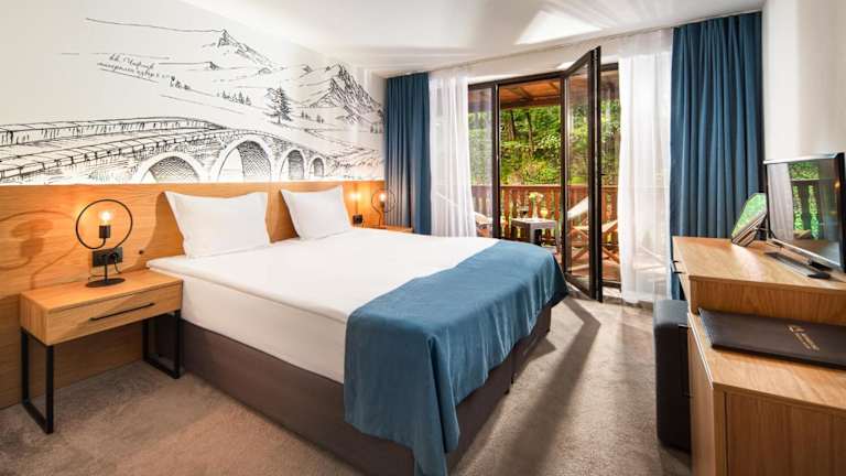 Das Hotel Alfaresort Thermal Chiflika liegt etwa 16 km südlich der Stadt Troyan und ist von den beeindruckenden Naturreservaten Kashka, Vasilyov und Goat Wall umgeben. Die Lage bietet Ihnen die perfekte Gelegenheit, die unberührte Natur zu erkunden und die Ruhe und Schönheit der Umgebung zu genießen. In der Nähe finden Sie auch die Stadt Lovech und die berühmte Devetashka-Höhle. Der Flughafen Sofia ist etwa 180 km entfernt.