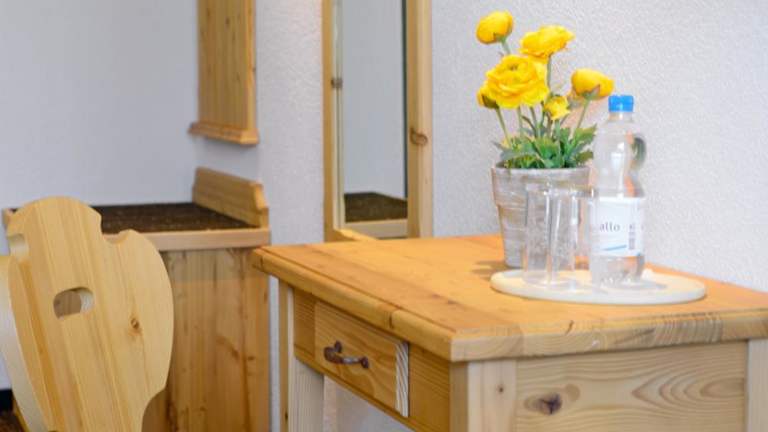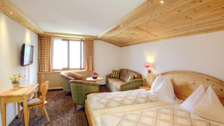 Die Zimmer im Hotel Restaurant Alpina sind geräumig und bieten einen herrlichen Blick auf die Berge. Die charmante Dekoration mit Holzelementen verleiht den Zimmern ein gemütliches Ambiente. Hier können Sie sich nach einem aktiven Tag in den Bergen wunderbar entspannen.