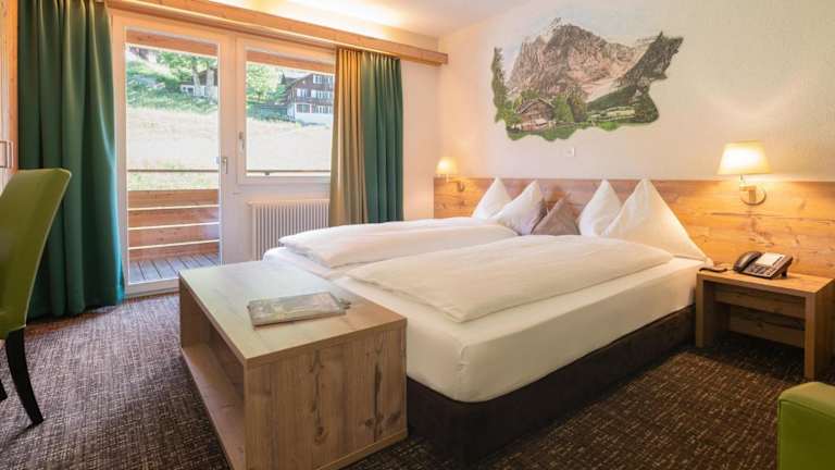Der große Garten des Hotels ist ein idealer Ort, um sich zu entspannen und die frische Bergluft zu genießen. Der rustikale Aufenthaltsraum bietet eine gemütliche Atmosphäre und einen wunderbaren Blick auf die Umgebung. In der Umgebung von Grindelwald gibt es zahlreiche Möglichkeiten für Outdoor-Aktivitäten wie Skifahren und Wandern. Besonders beeindruckend sind der Sonnenbalkon First, die Kleine Scheidegg und das Jungfraujoch, von denen aus Sie atemberaubende Aussichten genießen können. Ein besonderes Highlight ist die begehbare Gletscherschlucht, die einen faszinierenden Einblick in die Gletscherwelt bietet.