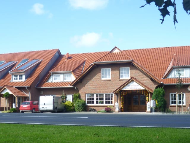 Unser Restaurant "Alte Post" finden Sie in 1 km Entfernung. Saisonabhängig bieten wir Ihnen neben unserer vielfältigen Speisekarte eine individuelle Saisonkarte mit leckeren Köstlichkeiten. Je nach Jahreszeit können Sie von deftigen Wintergerichten wie Grünkohl und Steckrüben, über Spargel und Matjes bis hin zu Wild- und Pfifferlingsgerichten bei uns immer neue Versuchungen entdecken. Regionale Produkte erfahren hierbei stets eine besondere Wertschätzung. Eine hauseigene Galloway-Zucht garantiert bestes Qualitäts-Rindfleisch und gelegentlich verarbeiten wir auch Wild aus eigener Jagd. Feinsten Fisch liefert uns die Nordsee in unmittelbarer Nähe. Frühstück täglich von 7.00 bis 10.00 Uhr; warme Küche täglich von 11.00 - 21.30 Uhr - kein Ruhetag.