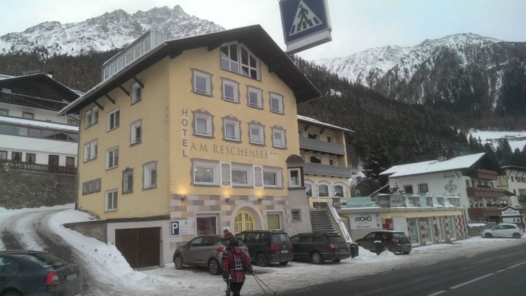 Das Hotel Am Reschensee befindet sich am Reschensee im kleinen Dorf Reschen mitten im Dreiländereck Österreich- Italien- Schweiz, in der oberen Region des Vinschgaus. Direkt an der Durchfahrtsstraße mit wunderschönen Blick auf den See und das Ortlermassiv.Es gibt Lebensmittelgeschäfte und kleinere Läden vor Ort. Skibus- Station direkt vor dem Hotel. Schnelle Verbindungen zu den Skigebieten Schöneben und Haider Alm.