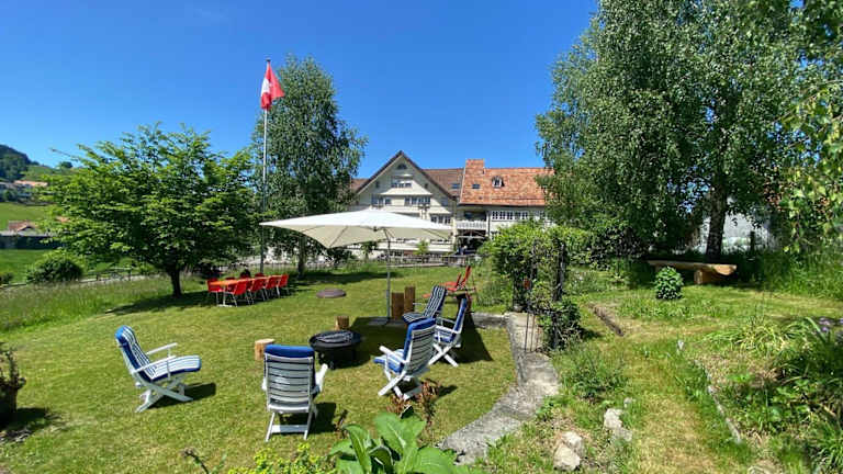 Das Hotel am Schönenbühl befindet sich in Speicher, nur 10 km von St. Gallen entfernt, in den malerischen Appenzeller Alpen. Die Umgebung bietet zahlreiche Möglichkeiten für Wanderungen und Erkundungen in der Natur. Der Bahnhof Speicher ist in nur 15 Minuten zu Fuß erreichbar und bietet gute Anbindungen in die umliegenden Städte und Dörfer. In unmittelbarer Nähe des Hotels gibt es auch ein öffentliches Schwimmbad, das in nur 5 Gehminuten zu erreichen ist.