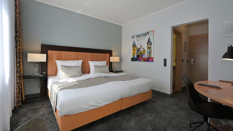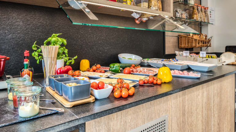 Die Verpflegung in diesem Hotel beinhaltet Frühstück. Einen angenehmen Start in den Urlaubstag bietet entweder ein Frühstücksbuffet oder ein Frühstück im Zimmer. Um die Unterkunft herum befinden sich einige Restaurants, zum Beispiel das Pasta 5 Sterne, La Fontana, Delphi und der Pfalzkeller. Alternativ kann eine Halbpension (3-Gang-Menü) in einem Partnerrestaurant in der schönen Fußgängerzone eingenommen werden (inklusive Hol- und Bringservice).