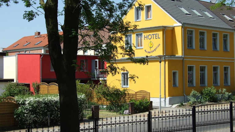 Das Hotel am Weinbergschloss in Waren, Mecklenburg-Vorpommern, bietet seinen Gästen eine komfortable Unterkunft mit kostenfreiem WLAN und Privatparkplätzen. Die Zimmer sind gemütlich eingerichtet und verfügen über einen Sitzbereich, einen Flachbild-Sat-TV und ein eigenes Bad. Die Lage des Hotels ermöglicht es den Gästen, die Umgebung mit Aktivitäten wie Radfahren zu erkunden. In der Nähe befinden sich verschiedene Sehenswürdigkeiten wie das Landestheater Mecklenburg und der Bürgersaal Waren. Der nächstgelegene Flughafen ist der Flughafen Rostock-Laage, der ca. 68 km entfernt liegt.