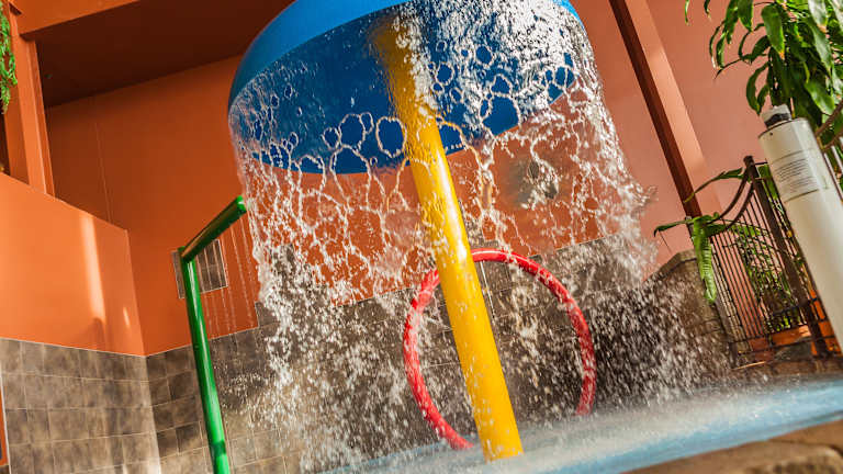 Das Hotel bietet verschiedene Freizeiteinrichtungen, darunter einen Innenpool, einen Whirlpool, ein Fitnesscenter und eine Sauna. Kinder können sich an einem bunten Spiele- und Unterhaltungsprogramm beteiligen.