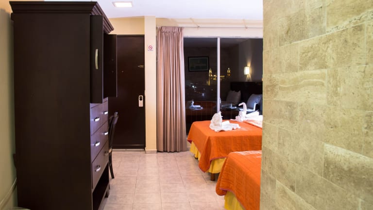Das Hotel Ambassador Mérida verfügt über 97 Zimmer, die auf 6 Etagen verteilt sind. Die Zimmer sind mit modernen Annehmlichkeiten wie Klimaanlage, TV und eigenem Badezimmer mit Dusche ausgestattet. Ein Aufzug steht Ihnen zur Verfügung, um bequem zu Ihrem Zimmer zu gelangen.