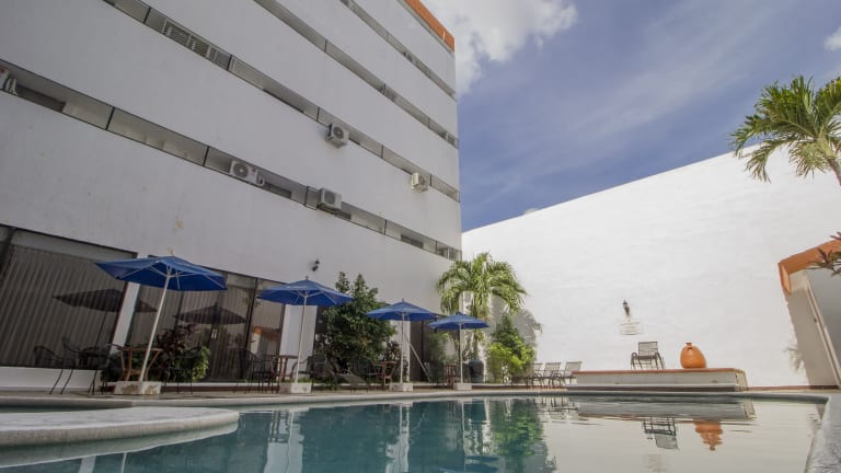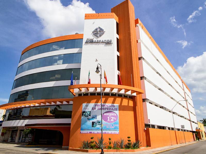 Das Hotel Ambassador Mérida bietet eine ideale Lage im Zentrum von Mérida, nur wenige Gehminuten vom Hauptplatz entfernt. Die Zimmer sind modern eingerichtet und verfügen über Annehmlichkeiten wie Klimaanlage und TV. Einige Zimmer bieten zudem einen Blick auf den Pool oder den Garten. Das Hotel verfügt über ein Restaurant und eine Bar, in denen Sie kulinarische Köstlichkeiten genießen können. WLAN steht Ihnen kostenfrei zur Verfügung und an der 24-Stunden-Rezeption sind die Mitarbeiter gerne für Sie da.