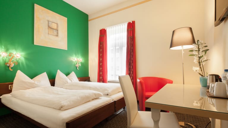 Das Hotel Ambassador befindet sich in einer ruhigen Straße und liegt ideal zwischen dem Bahnhof und der verkehrsfreien Altstadt. Diese Lage ermöglicht es den Gästen, bequem die Sehenswürdigkeiten der Stadt zu erkunden und gleichzeitig eine ruhige Umgebung zu genießen.