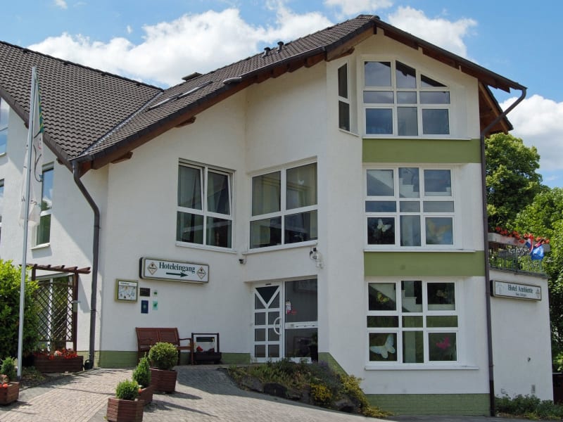 Das 1996 erbaute Hotel liegt ca. 5 Minuten vom Bahnhof in sehr ruhiger Lage. Es verfügt über 8 behindertenfreundliche Zimmer, davon sind fünf Nichtraucherzimmer. Unser Haus wurde von der Dehoga mit drei Sternen ausgezeichnet und zählt seit 2007 zu den Top 500 von Deutschland. Selbstverständlich verfügen alle Zimmer über kostenlosen W-Lahn Anschluss und Hot-Spot der DT. Kinder und Haustiere sind bei uns gern gesehene Gäste. Ebenso sind wir für Motorrad- und Fahrradfahrer bestens eingerichtet. Unser heller und freundlicher Empfang lädt Sie in den gemütlichen Sitzecken zu einem Schwätzchen mit anderen Gästen ein. Selbstverständlich gibt es auch dort einen Nichtraucherbereich. Das üppige Frühstücksbuffet nehmen Sie in unserem geschmackvoll eingerichteten Frühstücksraum oder auf der Terrasse ein. Die saubere Westerwälder Luft können Sie auf unserer großen Liegewiese mit Grillecke oder in der Gartenlaube genießen. Entspannung finden Sie kostenlos in unserer Sauna. Den ganzen Tag ist unser Clubraum mit Fernseher, Bar und behaglicher Sitzecke für Sie geöffnet