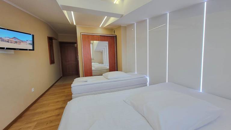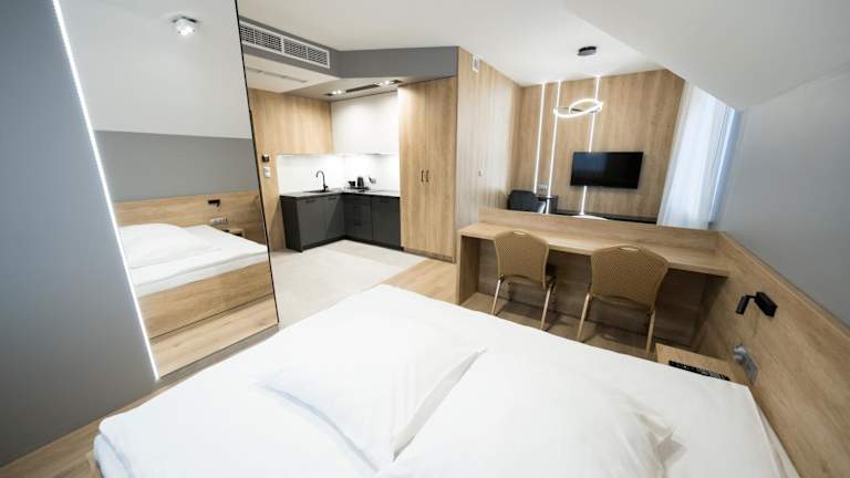 Die Zimmer im Hotel Ambrozja sind komfortabel und gemütlich eingerichtet. Jedes Zimmer verfügt über einen Schreibtisch, einen Flachbild-TV und ein eigenes Bad. Einige Zimmer bieten zudem einen Balkon mit Blick auf den Fluss. In einigen Zimmern gibt es auch eine Küche mit einem Kühlschrank, einer Minibar und einem Kochfeld. Bettwäsche, Handtücher und ein Kleiderschrank sind ebenfalls vorhanden.