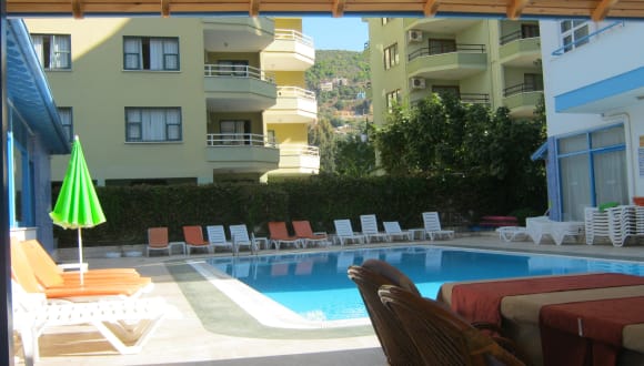 Das Hotel Anahtar Apart befindet sich in Alanya und liegt nur 60 Meter vom Sandstrand entfernt. Es ist von einem schönen gepflegten Garten umgeben und bietet zahlreiche Einkaufs- und Unterhaltungsmöglichkeiten in der Nähe. Die öffentlichen Verkehrsmittel sind direkt vor dem Hotel vorhanden, so dass Sie die Umgebung bequem erkunden können.